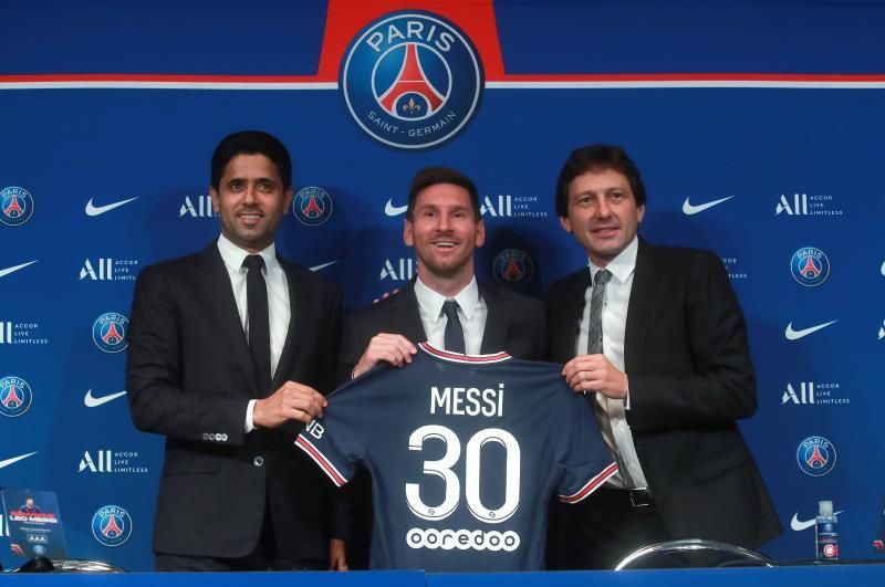 Acompañado por su mujer y tres hijos en una sala de prensa a rebosar, citó al presidente del PSG, el catarí Nasser Al-Khelaifi -presente junto en la conferencia-, y al director deportivo, el brasileño Leonardo.