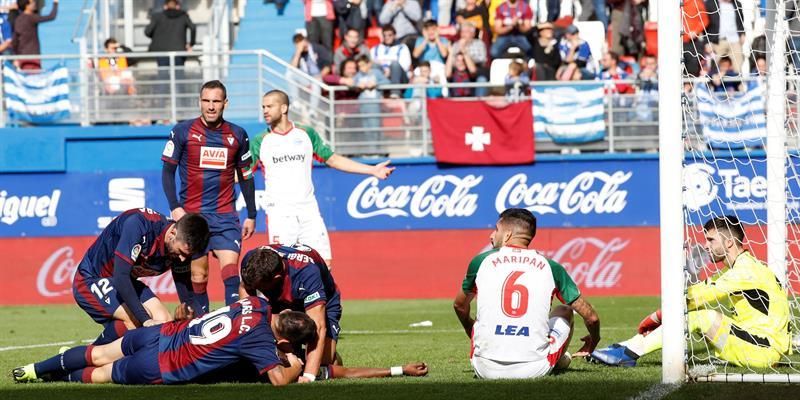 El Alavés supo recolocarse en el campo en los siguientes minutos y, pese a que el Eibar seguía dominando, los babazorros continuaban sin sufrir demasiado.