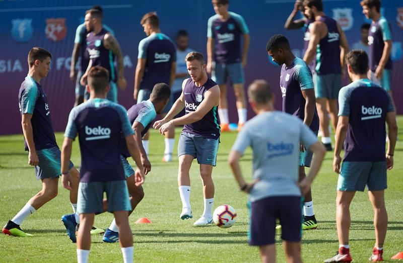 Sant Joan Despí (Barcelona), 18 jul (EFE).- El primer equipo del Barcelona ha realizado este miércoles la primera sesión preparatoria de la jornada, abierta a la prensa, con la presencia de jugadores del filial ya que Ernesto Valverde todavía no cuenta con los futbolistas que participaron en el Mundial de Rusia.