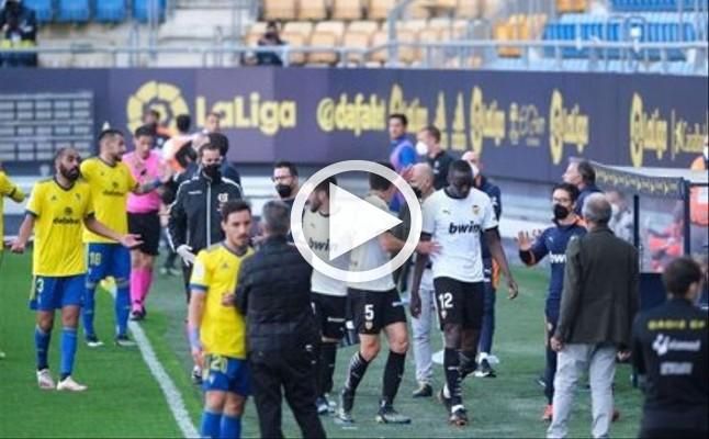 Por su parte, el central del Valencia Mouctar Diakhaby también ha dado este martes su versión de lo ocurrido el pasado domingo en el campo del Cádiz y reiteró que, tal y como le trasladó al árbitro, un jugador local le profirió un insulto racista y desveló que compañeros de éste trataron de que volvieran al terreno de juego ofreciendo la posibilidad de que Juan Cala se disculpara.