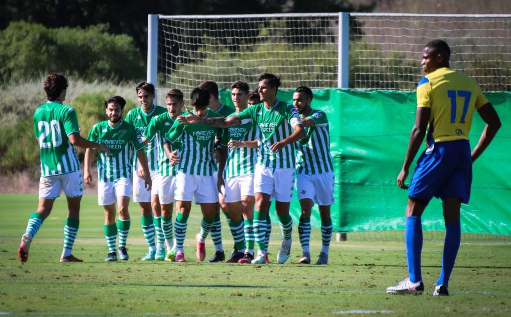 La buena puesta en escena encontró el premio del gol al filo de la primera media hora, cuando Ángel Baena adelantó a los verdiblancos, que a partir de ahí supieron controlar el encuentro y alcanzaron el descanso con 1-0 en el marcador. La reanudación dejó a un Cádiz B algo más animado y que después de varios intentos frustrados consiguió nivelar el duelo de filiales con un tanto obra de Carrasco en el 67'.