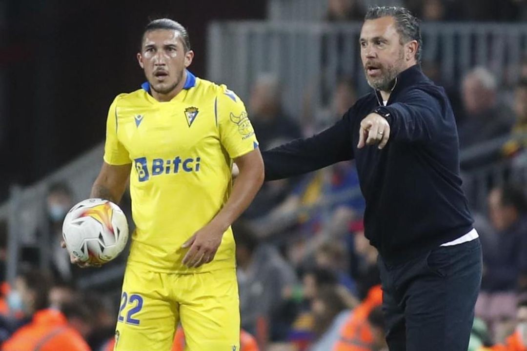 Pacha Espino, junto a su técnico Sergio González.Alejandro Sáez