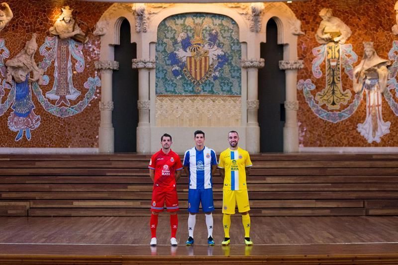 El Espanyol ha presentado este martes en el Palau de la Música de Barcelona sus equipaciones para la temporada 2018-19, creadas por Kelme, con diseños que apuestan por mantener los colores y la estructura clásica del club blanquiazul.