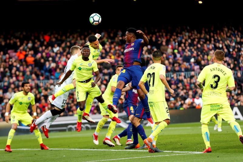 Tras la reanudación, con el Getafe encerrado en su área, Yerry Mina tuvo poco trabajo en funciones defensivas. Solo apareció, rápido en el corte, para evitar que Ángel pudiera encarar a Ter Stegen dentro del área.