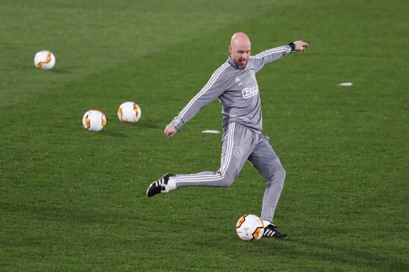 El técnico del Ajax dirigió un entrenamiento muy suave, con ejercicios de estiramiento, carrera continúa y un poco de toque de balón antes de terminar su visita al césped del escenario del choque.