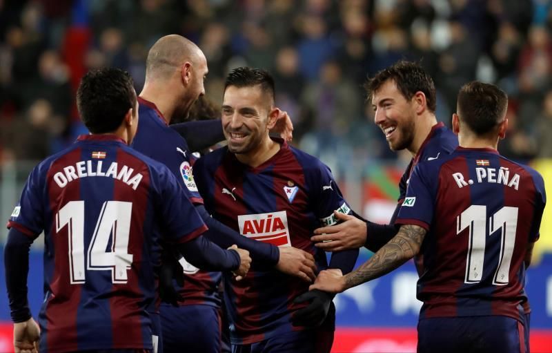 La mayor insistencia del Eibar hizo que llegase el primer gol del partido, obra de Rubén Peña, que enganchó a la perfección un pase atrás de Orellana.