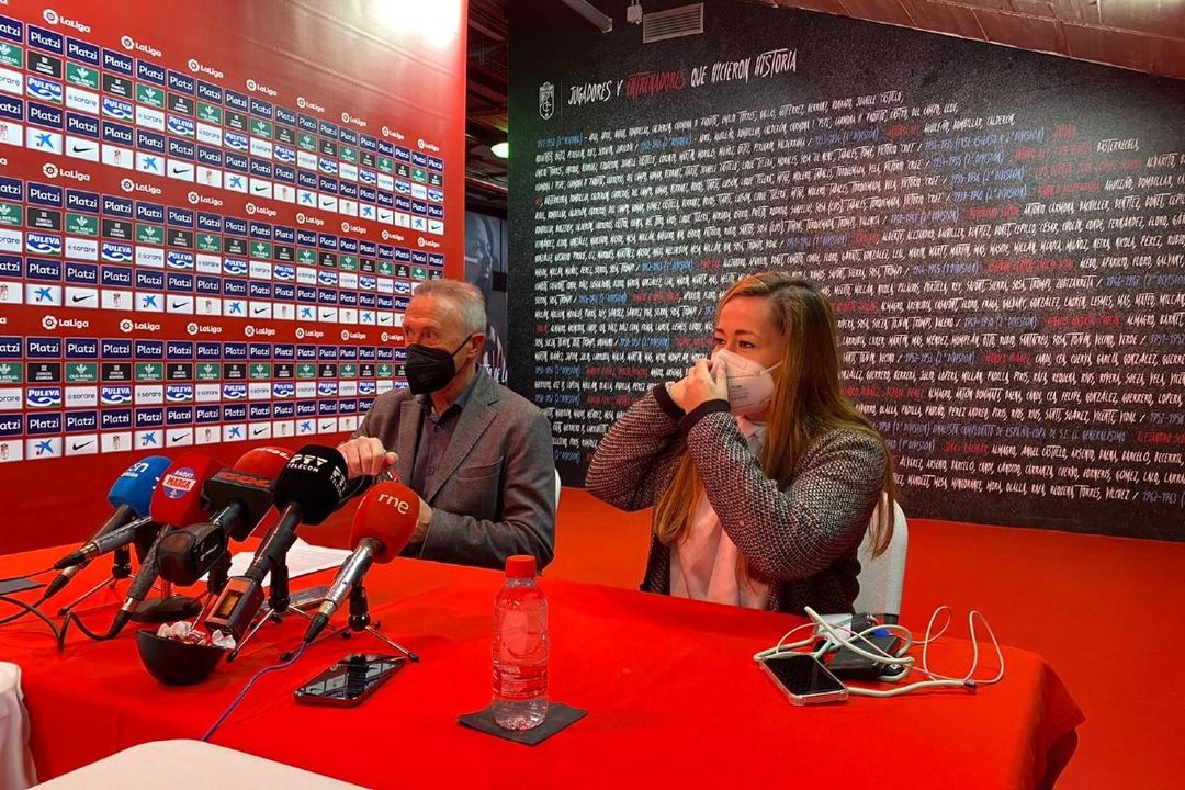 Patricia Rodríguez, directora general del Granada CF, y Pep Boada, director deportivo del conjunto nazarí, dieron este jueves una rueda informativa en la que trataron la actualidad rojiblanca.