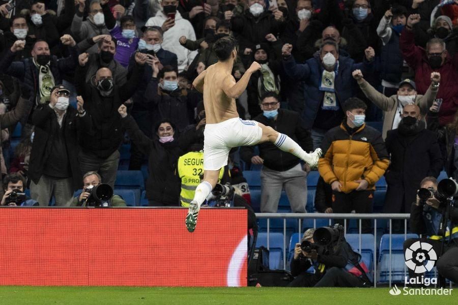 Marco Asensio celebra el gol con el que el Madrid derrotó al Granada.Chema Ruiz España