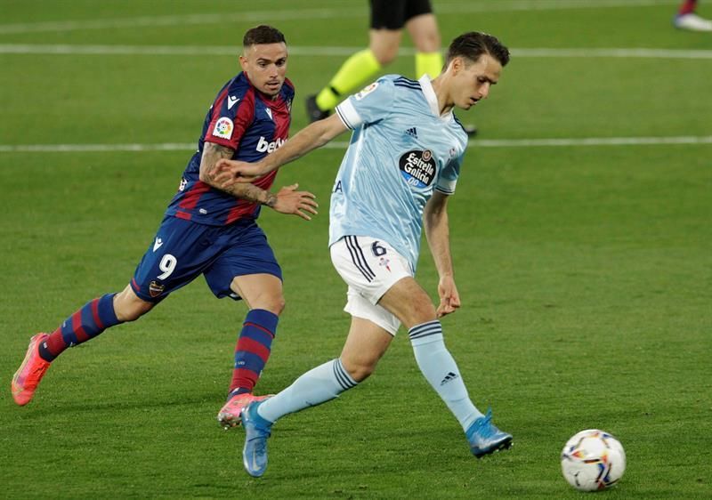 Coudet cambió piezas de su defensa en el descanso. Metió a Araujo y Aaron. El Levante, tras un nuevo fallo en la zaga gallega, asustó a Iván Villar con un centro que no cazó Roger.