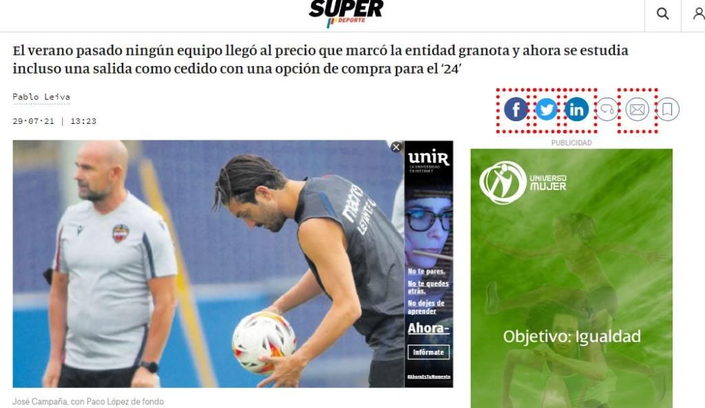En este sentido, asegura el citado periódico que en vista de la ausencia de ofertas interesantes por un traspaso, el Levante estudiará propuestas de cesión -con o sin opción de compra- que le permitan ahorrarse la ficha de Campaña, con contrato hasta 2023 y en el primer escalón salarial de los valencianos (3,2 millones de euros) después de su última renovación, en la que también dobló su cláusula de rescisión hasta los 60 millones de euros. Hace justo un año acababa de debutar con la selección absoluta y, además del sempiterno interés del Sevilla FC, sonaba con fuerza como petición expresa de Simeone para el Atlético de Madrid.