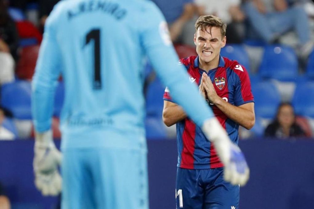 "Yo creo que (De Frutos) vale más de diez millones", dice un Felipe Miñambres, director deportivo del Levante UD, que trabaja en dar forma al Levante de la 22/23 que tendrá que luchar por conseguir volver a Primera división. Una tarea complicada para la que los granotas, antes, deberán cuadrar su cuentas, estando obligados a vender por valor de 10'4 millones de euros antes del 30 de junio. Y claro, Jorge De Frutos se antoja una oportunidad pintiparada para ello.