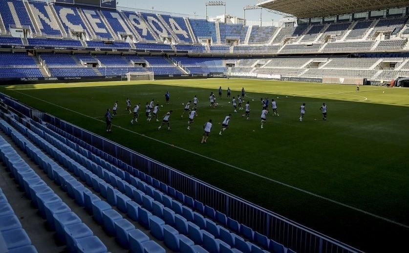 Tras unos días de descanso, el entrenamiento del conjunto blanquiazul transcurrió con cautela, envuelto por el gran ambiente en las gradas de La Rosaleda.