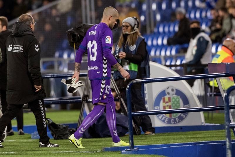 Rubén chocó con el delantero Ángel Rodríguez cuando fue a despejar un balón que intentaba alcanzar el jugador del Getafe y no pudo continuar, por lo que fue sustituido por Sergio Herrera.