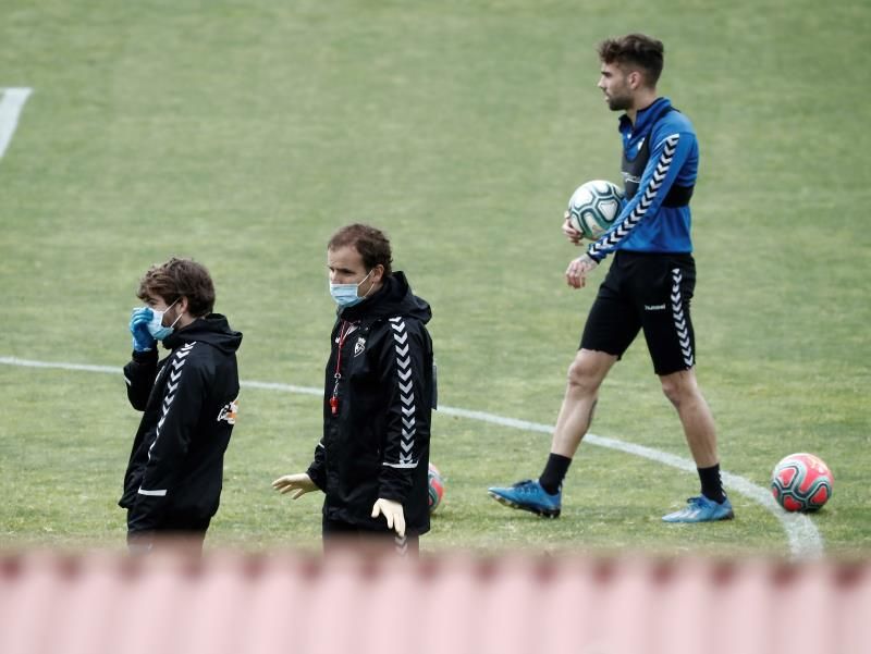 Cincuenta y seis días después de realizar el último entrenamiento grupal al completo, los futbolistas del cuadro navarro comenzaron a trabajar en solitario antes de pasar a dos grupos y posteriormente todos juntos.