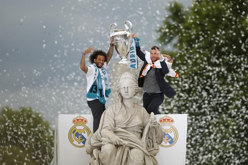 Ese breve trayecto de los futbolistas fue el paso previo al contacto con la 'diosa'. Una vez más, ese privilegio correspondió a los capitanes Sergio Ramos y Marcelo Vieira, bajo la atenta mirada del resto de sus compañeros.