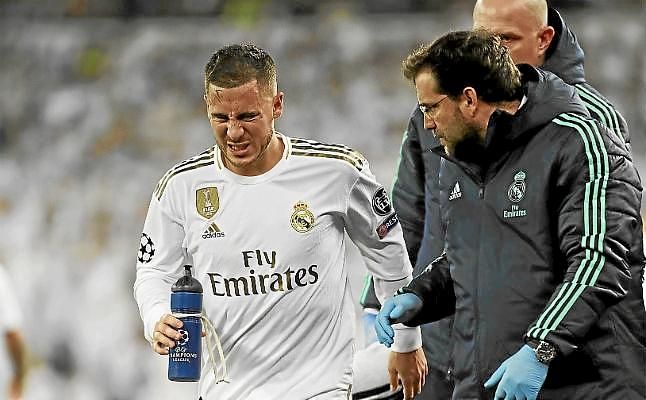 Cuando el equipo de Zinedine Zidane desplegaba el mejor juego de toda la temporada, un terremoto en forma de lesiones ha sacudido el vestuario blanco. En la mañana de hoy se ha dado a conocer que la lesión del belga Eden Hazard es bastante más grave de lo que parecía en principio. En un primer momento, los servicios médicos del equipo madridista hablaban de una contusión perimaleolar externa, que dejaría al extremo diez días apartado de los terrenos de juego, pero que en ningún caso supondría un problema para disputar el clásico.