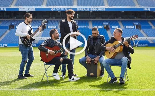 Ante la imposibilidad de asistir a Sevilla, la Real se ha planteado "traemos un trocito de su cultura" y lo ha plasmado con una original versión del himno txuriurdin a cargo el grupo guipuzcoano Sonakay, celebre por fusionar el flamenco y el euskera, como hizo con el "Txoria Txori" de Mikel Laboa.
