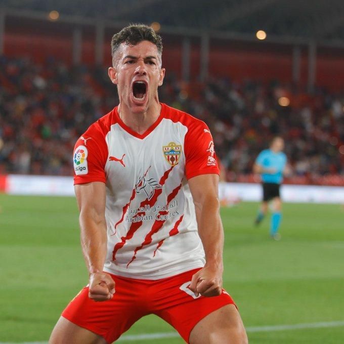 El atacante de La Palma del Condado se convirtió ayer en el gran protagonista de la victoria de la UD Almería sobre el Real Sporting de Gijón (1-0) gracias a un gol, de bella factura, que permite a la escuadra indálica mantenerse en los puestos de ascenso directo a LaLiga, por los que lucha con la SD Eibar y el Real Valladolid, dos bloques recién descendidos el pasado curso futbolístico de Primera división, lo que habla muy bien del proyecto que entrena Rubi.