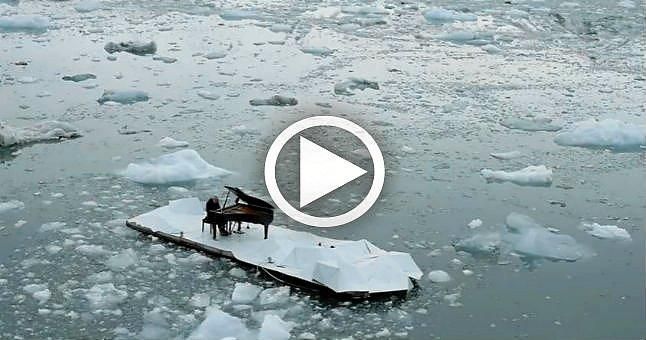 Greenpeace está llevando a cabo varias iniciativas una de ellas la protagonizado el célebre pianista, quien interpreta la pieza 'Elegy for the Arctic' rodeado del silencio de las gélidas aguas. Sobre una plataforma, el italiano, vestido de negro y con un piano de cola del mismo color.
