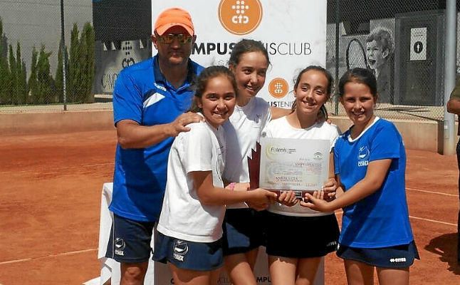 Las jugadoras del Club Tenis Coria, Estrella Castejón Ruiz, Isabel Morilla Muñoz, Gloria Suero Díaz y Natalia Franco Márquez, dirigidas por su entrenador Jose Manuel Ronquillo (Sema), se han proclamado campeonas de Andalucía en categoría Alevín. En la final del torneo, celebrado en Granada, se impusieron al Campus Tenis Club granadino.