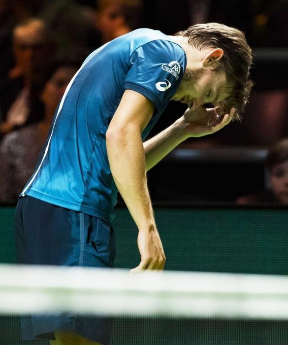 Goffin, que había perdido la primera manga por 6-1 y ganaba 1-0 en el segundo juego, fue a rematar una volea y la pelota salió despedida de la raqueta hacia su propio ojo. Tras intentar recuperarse en su silla optó por abandonar el partido.