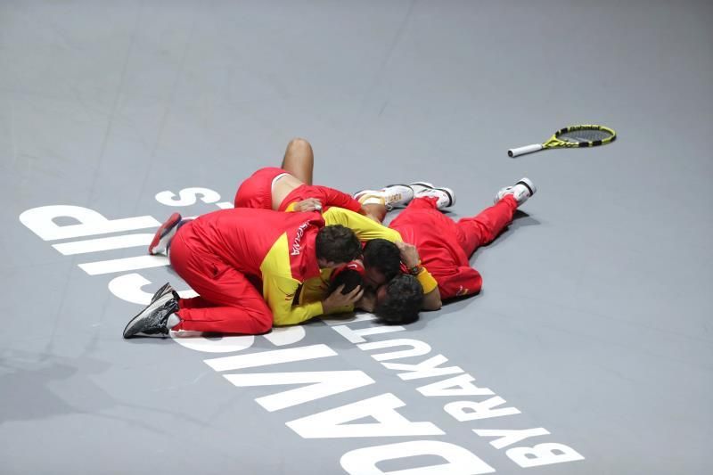 Manolo Santana, el hombre con el que empezó todo este lío del tenis en España, disfrutó a sus 81 años como un niño y vio ganar a su equipo la sexta Copa Davis en la pista que lleva su nombre. Un triunfo de equipo porque los cinco integrantes -Feliciano López, Marcel Granollers y Pablo Carreño completan el grupo- han jugado algún partido durante el torneo.