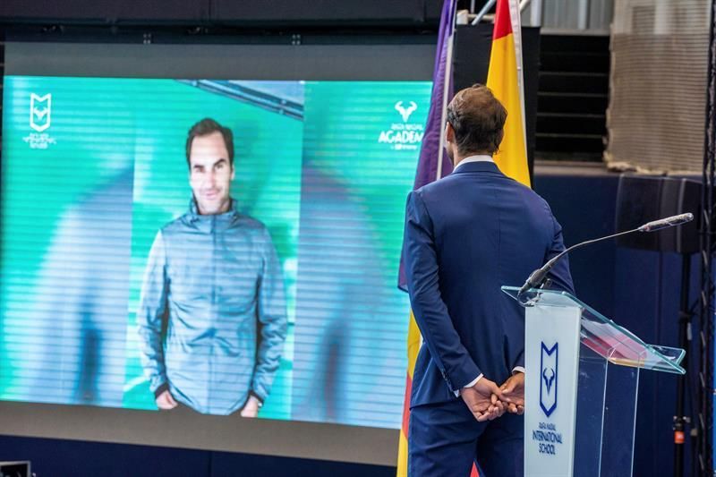 Federer, por su parte, gran amigo de Rafa y quien ya estuvo presente en la inauguración oficial de la academia, animó a los alumnos a "pasarlo bien?.
