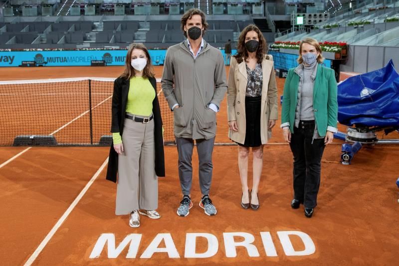 Durante la visita, Andrea Levy ha estado acompañada de la concejala del distrito de Usera, Loreto Sordo; la consejera de Presidencia de la Comunidad de Madrid y responsable de Deportes del Gobierno regional, Eugenia Carballedo; y el director del Mutua Madrid Open, Feliciano López.