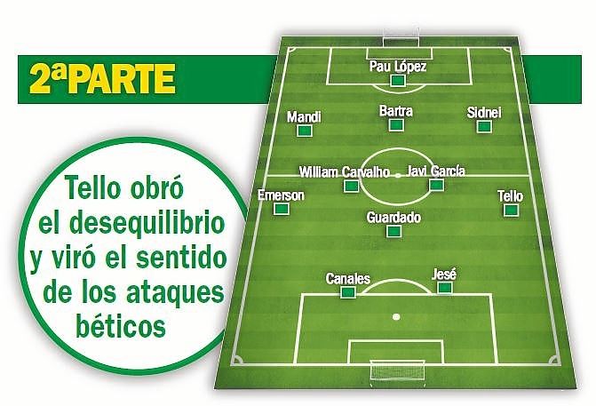 El conjunto de Setién se tomó en serio el partido desde el principio, consciente de lo que se jugaba y de la ansiedad de un Celta al que dio opciones, pero que desapareció con la entrada de Tello en el campo, un factor de desequilibrio y desconcierto que terminó siendo letal.