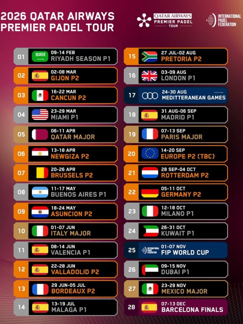 Hace apenas cuatro días que vivimos un final de temporada apasionante en el Premier Pádel Tour y mientras se anuncian las nuevas parejas para el próximo año, ya tenemos aquí el calendario 2026 del circuito, que llega con novedades destacadas y con nuevas sedes que refuerzan la expansión internacional del circuito.