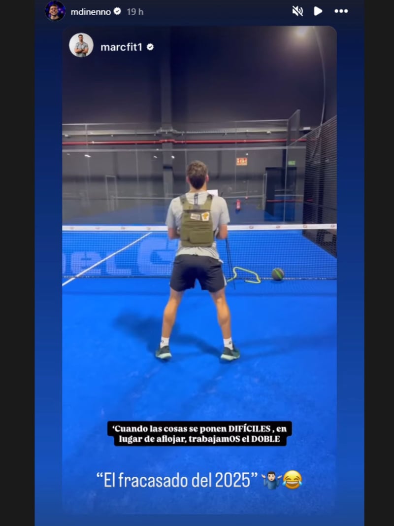 Eso ha hecho que se haya puesto en duda la continuidad del argentino y el andaluz y que, sobre todo, Di Nenno esté recibiendo la mayor parte de los palos. Ante esto, el de Ezeiza no ha dudado en responder. Y lo ha hecho con ironía y en el mismo lugar desde donde le llegan la mayor parte de las críticas. En las redes sociales. "Cuando las cosas se ponen difíciles, en lugar de aflojar, entrenamos el doble", ponía su entrenador, Marcos López, en Instagram, una imagen que Di Nenno tomaba y firmaba: "El fracasado del 2025".