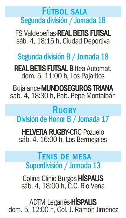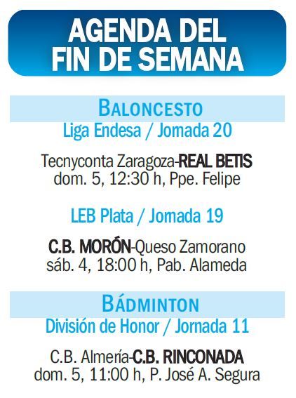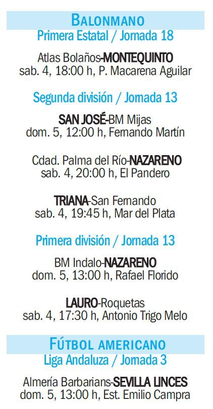 La guía del polideportivo para este fin de semana - R. S.No te pierdas los horarios del polideportivo andaluz de este fin de semana.Compártela en: