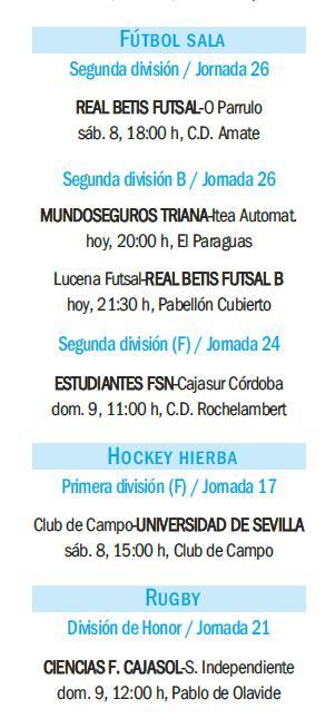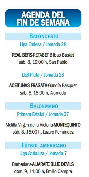 La guía del polideportivo sevillano para este fin de semana - R. S.Consulta aquí los horarios del polideportivo sevillano para este fin de semana.Compártela en: