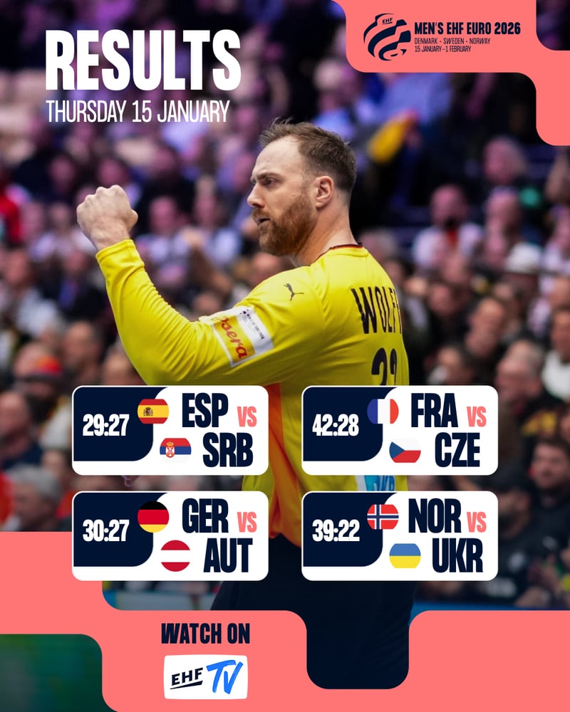 Fantástica primera jornada la que hemos vivido en el Europeo de balonmano masculino 2026 en este jueves 15 de enero. El gran aliciente era ver el debut de España, el cual se ha saldado con triunfo de los Hispanos ante Serbia. Además, Alemania hizo los deberes, mientras que Francia y Noruega apabullaron a sus rivales.