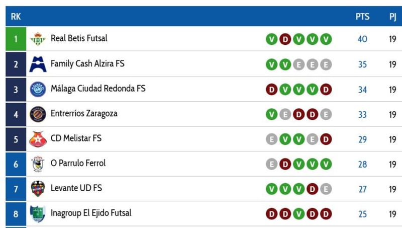 Esa regularidad les ha llevado, después de que Alzira y Málaga hayan pinchado este fin de semana, en el que el Betis ha superado por 3-1 al Melistar FS a escaparse en la tabla con cinco puntos de ventaja sobre los alicantinos y seis frente a los malagueños. Todo ello con cuatro partidos jugados ya en la segunda vuelta y a once jornadas de la conclusión de la Liga.