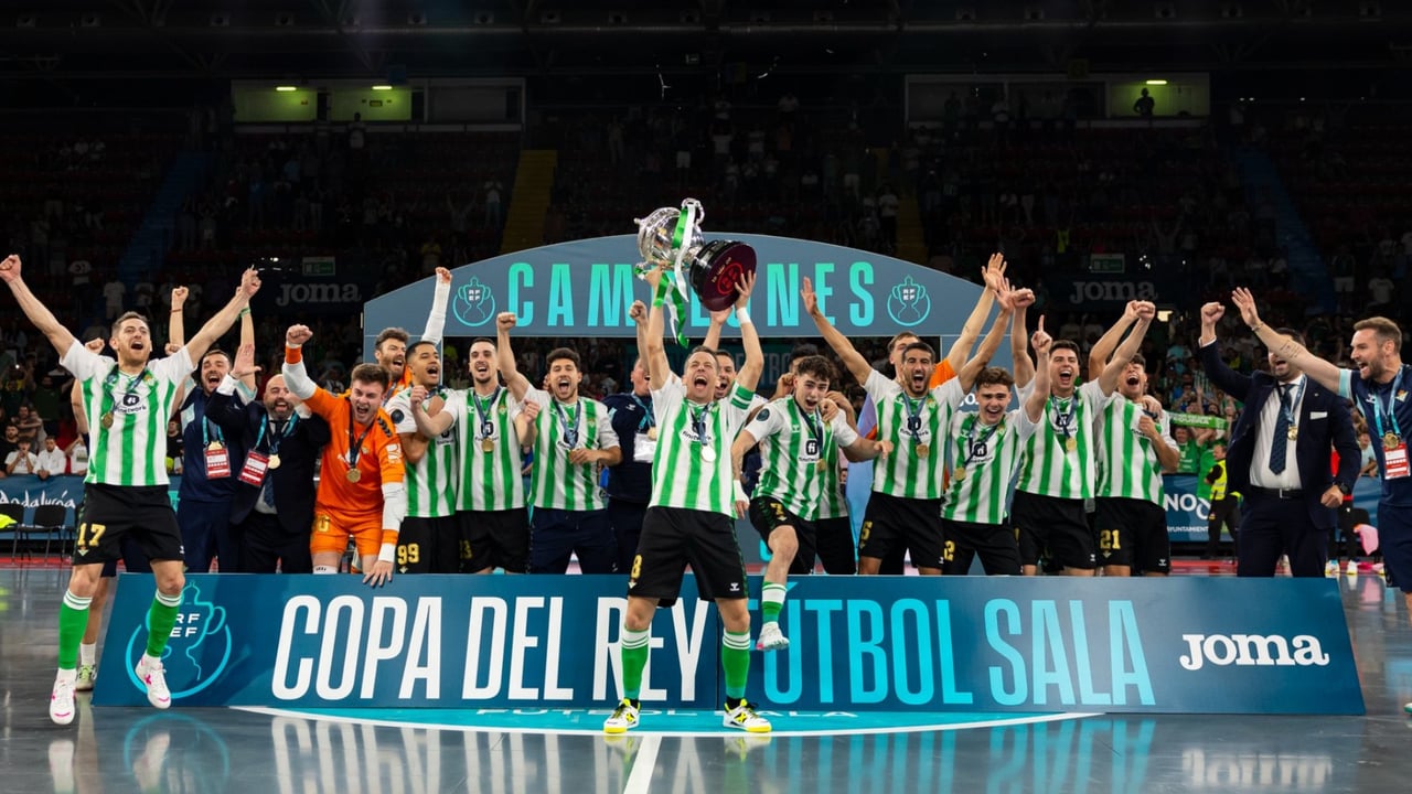 Solo el Betis es capaz de descender en una misma temporada y salir campeón de la Copa del Rey. Historia en el conjunto verdiblanco que gana la Copa del Rey por primera vez en su historia. En una tanda de penaltis muy apretada ante el Jimbee Cartagena, los béticos se impusieron en el Pabellón San Pablo. Lemine marcó el tanto definitivo y ya pasa a ser parte de la historia del beticismo. Una semana más tarde de consagrar su descenso a Segunda división, ahora celebran un título.