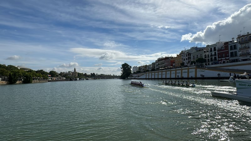 Las dos tripulaciones comenzaron con mucha energía y la verdiblanca alcanzó el Alamillo una pizca por delante, tratando de cerrar el paso a la sevillista para alcanzar el meandro en la mejor posición. Sin embargo, los nervioneses aguantaron la arremetida y llegaron primeros tanto al puente de La Barqueta como a la mencionada curva. Podría haber campanada sevillista, pero fue entonces cuando el Betis hizo valer su favoritismo y aprovechó el desgaste del rival para tomar de nuevo la delantera una vez pasado el Puente de Triana.