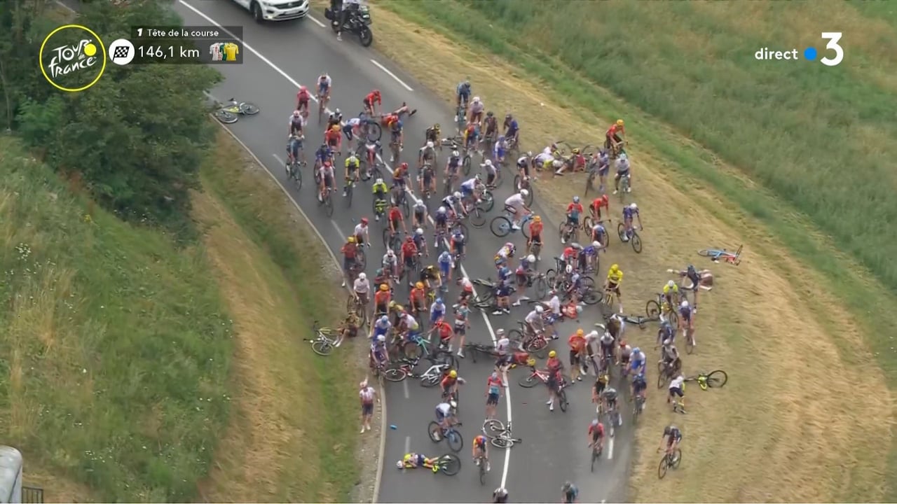 Imagen de la multitudinaria caída en el Tour de Francia@LeTour