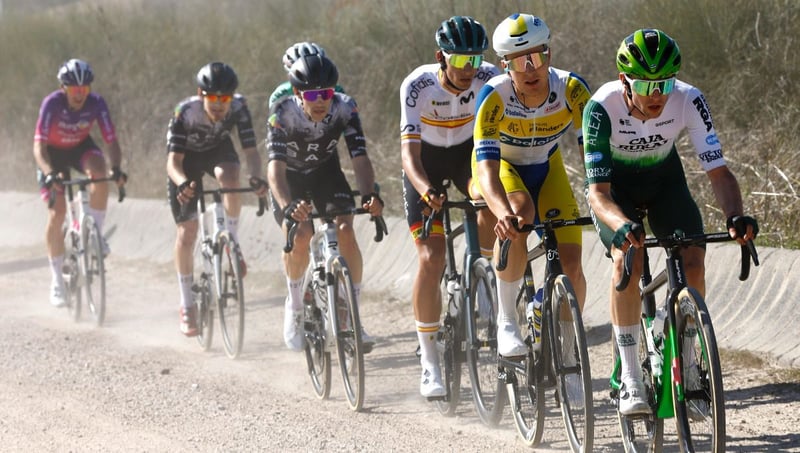 Tras una primera escapada plagada de ciclistas de equipos modestos, Kwiatkowski saltó al paso por el segundo sector de tierra, Mar de Olivos, de 5,1 kilómetros, un tramo que terminó por romper la carrera. Junto al campeón del mundo en 2014 en Ponferrada el norteamericano Brandon McNulty (UAE Team Emirates) para alcanzar esa fuga que se había formado en la primera mitad de la carrera y en la que ya solo quedaban dos españoles, Ibon Ruiz (Kern Pharma) y Julen Arriola-Bengoa (Caja Rural-Seguros RGA).