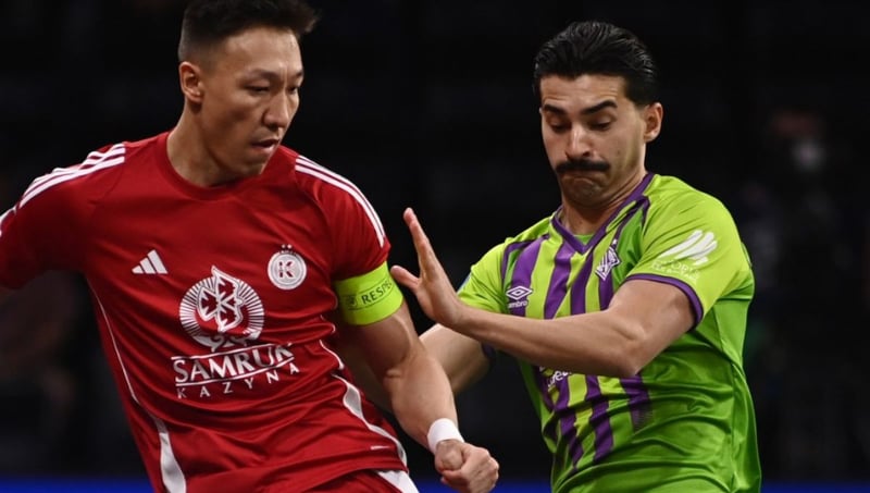 Kairat Almaty: Dennis Cavalcanti, Edson, Tusargulov, Orazov y Kevin Arrieta -cinco inicial-, Caio Ruiz, Alisson, Otanha, Zanotto, Dener y Rashit