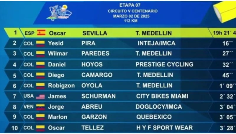 Óscar Sevilla ya fue subcampeón hace seis años en esta misma carrera y sucede al venezolano José Castillo en el palmarés de la misma. Era su tercera cita de la temporada tras dos carreras de un día, la Clásica de Rionegro, donde acabó el 12º, y el Circuito Ciudad de Tuta, en el que finalizó el 24º clasificado.