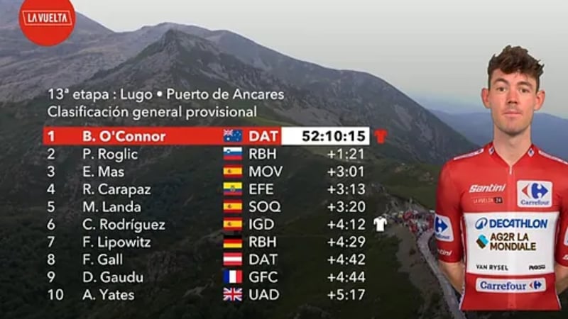 Clasificación Vuelta a España 2024 tras la 13 etapa | La 'amenaza' de Roglic a O'Connor se hace realidad
