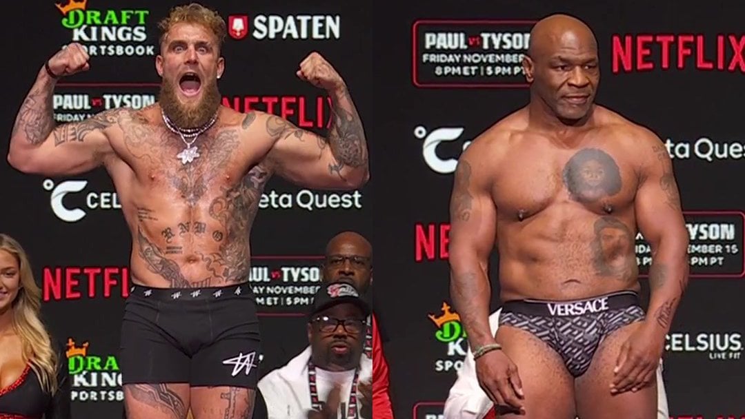 Jake Paul y Mike Tyson en el pesaje previo a su combate@netflix
