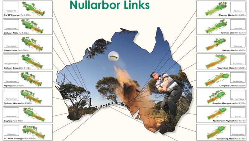 El campo de golf más grande del mundo, llamado Nullarbor Link, cuenta con 18 hoyos y con un par 72, pero cada uno de sus hoyos se extiende por muchos kilómetros para completar un total de 1.365.