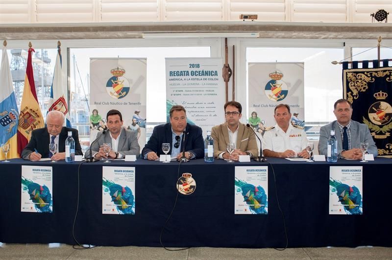 El Salón del Mar del RCNT acogió este viernes el acto de presentación de la prueba, con la presencia del comodoro del club, Félix Galera; el vicepresidente primero y consejero de Deportes del Cabildo de La Gomera, Adasat Reyes, y el diputado de Concertación de la Diputación de Huelva, Ezequiel Ruiz.