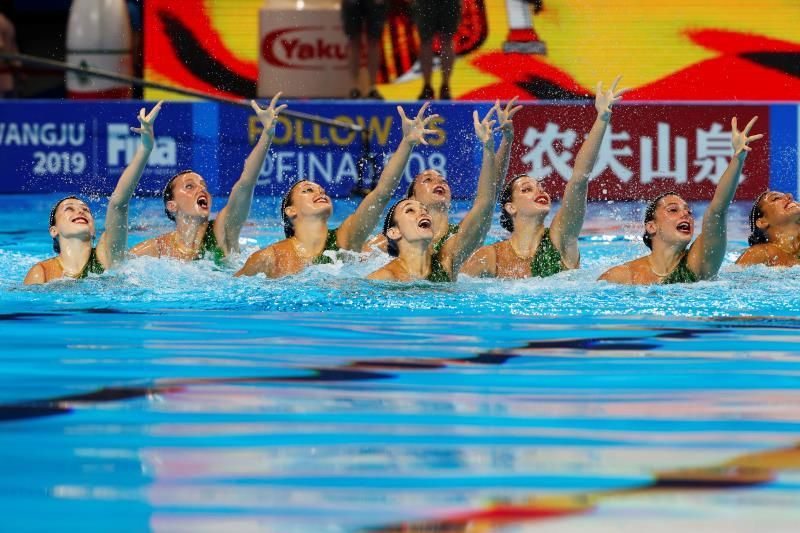 En la rutina de equipo técnico, la más prestigiosa del programa de natación artística, España mantuvo su sexta posición en el escalafón mundial, aunque mejoró su puntuación (90,2506), en una prueba en la que Rusia ofreció un altísimo nivel y rozó los 97 puntos.