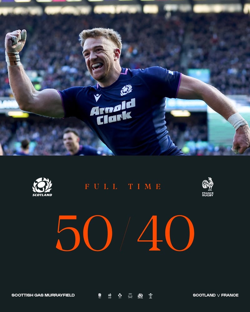 El partido, tal y como señalábamos, concluiría con un 50-40 que deja a Escocia empatada a puntos en el primer puesto además de recuperar el Trofeo Auld Alliance; eso sí, Francia llega a la última jornada en París dependiendo de sí misma para volver a levantar el Seis Naciones ante Inglaterra.