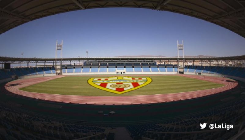 Actualmente, son sólo los dos los equipos de fútbol de LaLiga que juegan sus partidos como local en un estadio con pista de atletismo. Uno de ellos es la UD Almería. El Estadio de los Juegos del Mediterráneo sigue teniendo pista de atletismo, aunque ya están diseñadas las obras que aumentarán el aforo del campo eliminando dichas pistas, pasando de 18.331 a 25.000 espectadores.