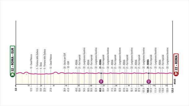 La última etapa comienza y termina en Roma, donde los ciclistas deberán completar ocho vueltas en un circuito que consta de 125 kilómetros