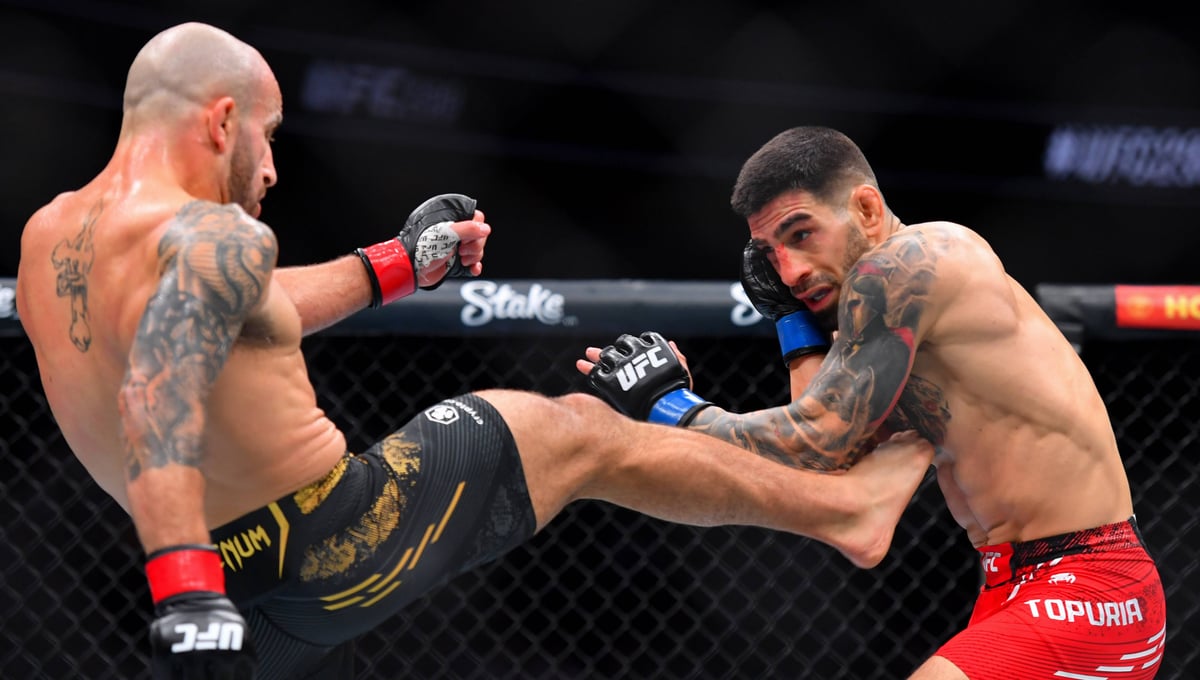 Volkanovski frente a Ilia Topuria, en el UFC 298Cordon Press